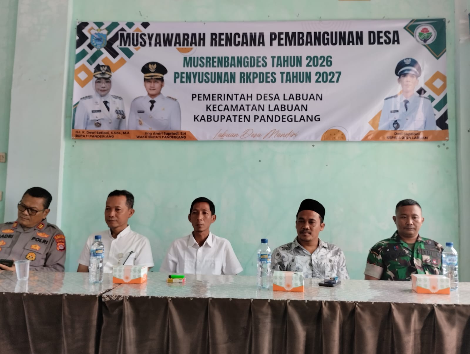 Desa Labuan, Kecamatan Labuan, Kabupaten Pandeglang, Banten, menggelar kegiatan Musyawarah Perencanaan Pembangunan Desa (Musrenbangdes) Labuan untuk Rencana Kerja Pembangunan Daerah (RKPD) tahun 2027. Kegiatan itu bertempat di aula Kantor Desa Labuan, pada Rabu (28/1/2026).