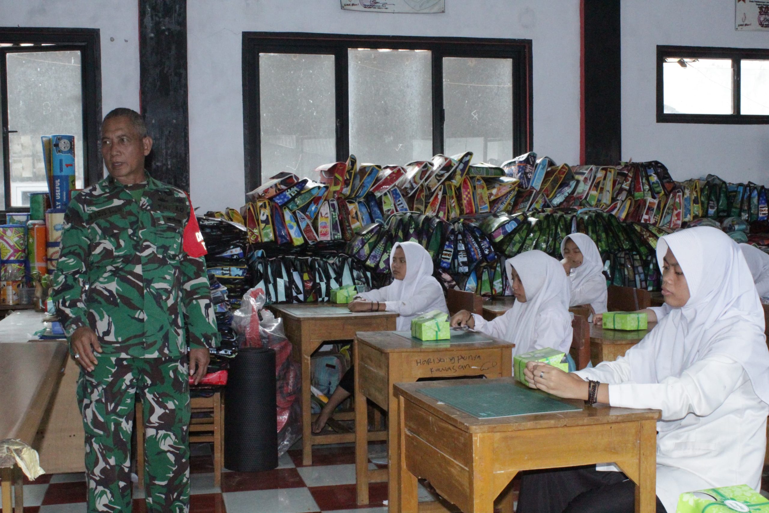 Satgas TNI Manunggal Membangun Desa (TMMD) Ke-127 Kodim 0602/Serang Tahun Anggaran 2026 memberikan penyuluhan materi Wawasan Kebangsaan kepada para siswa-siswi SMK Art Design, Kampung Panembungan, Desa Sukaraja, Kecamatan Cikeusal, Kamis (12/2/2026).