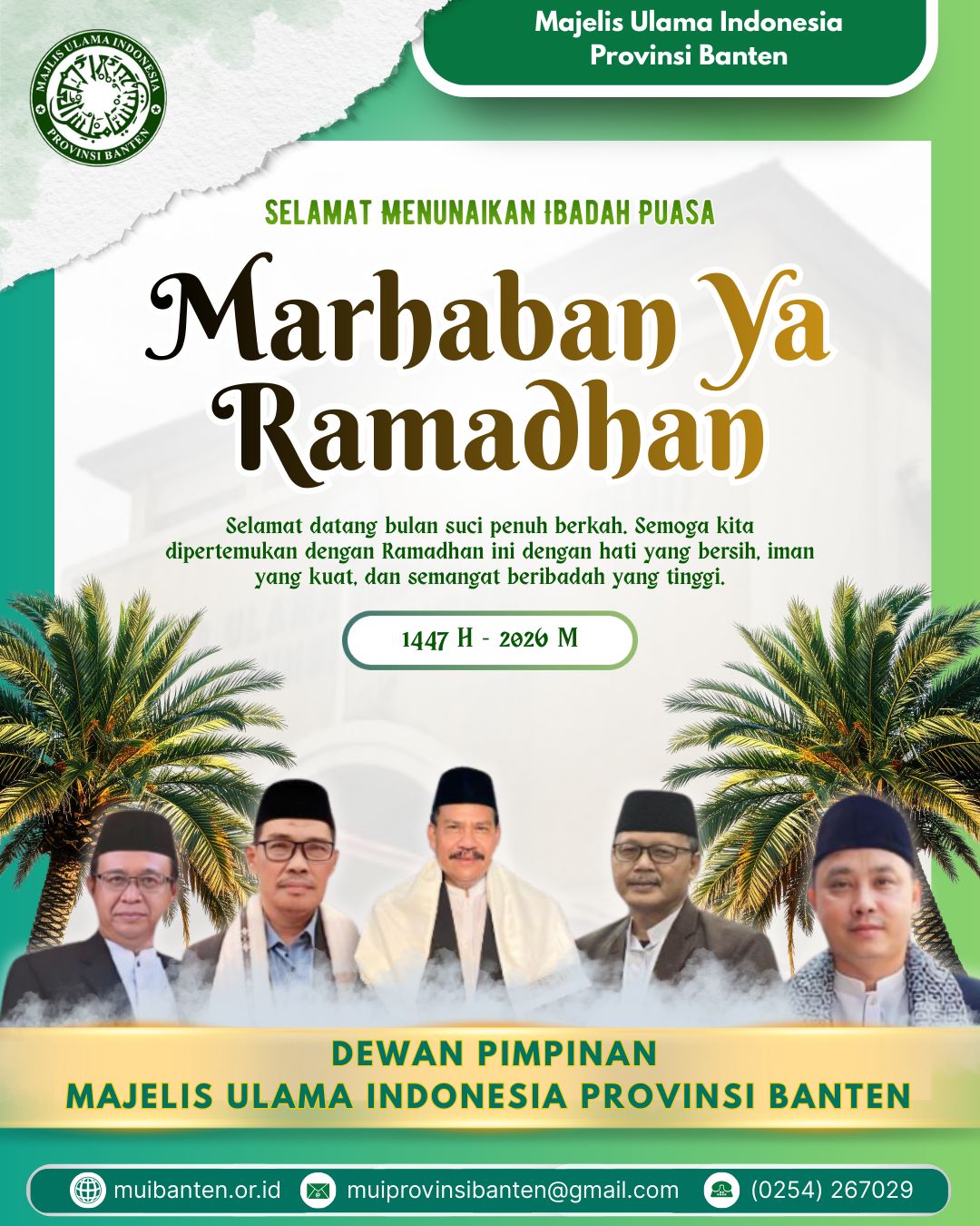 Majelis Ulama Indonesia (MUI) Provinsi Banten Mengucapkan Marhaban Ya Ramadhan 1447 H / 2026 M