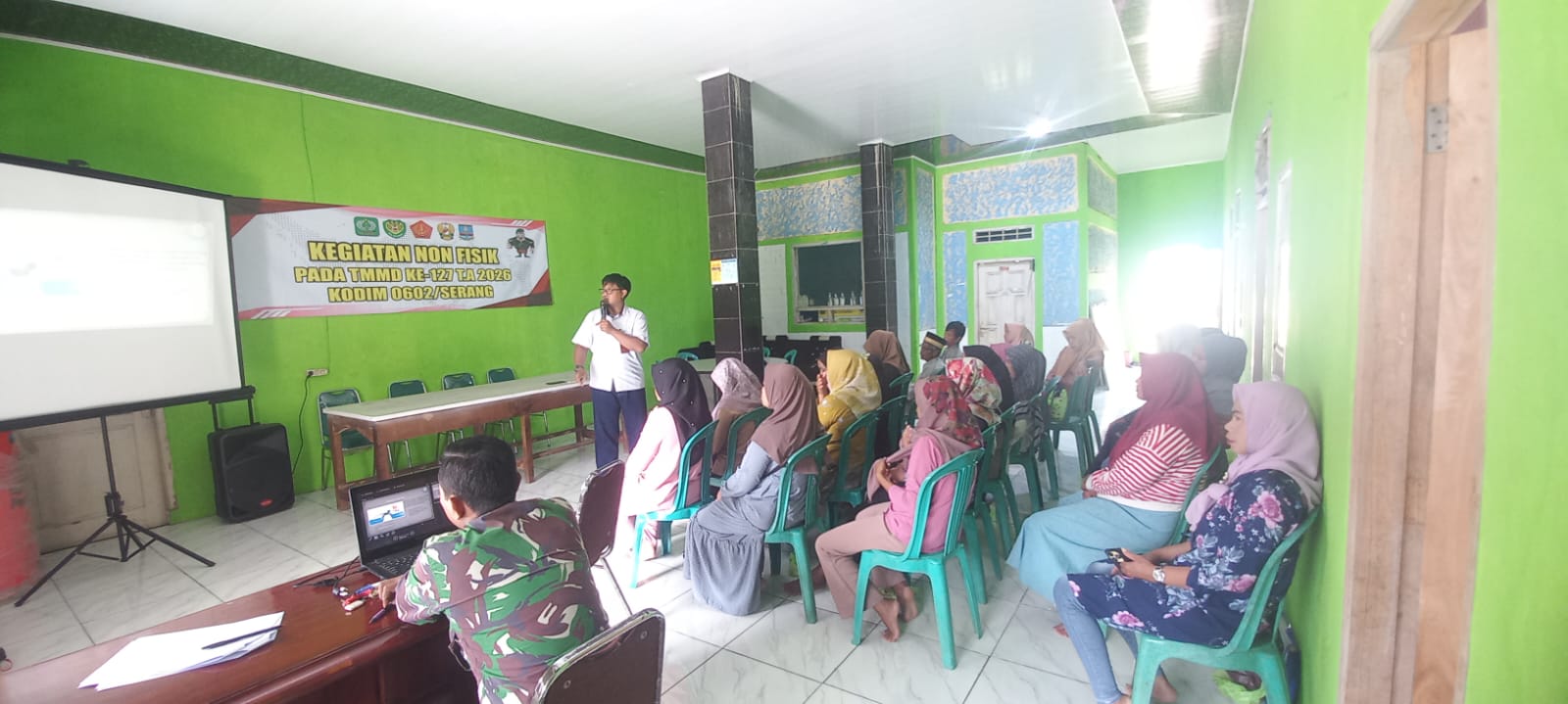 Satuan Tugas TNI Manunggal Membangun Desa (TMMD) Ke-127 Tahun Anggaran 2026 Kodim 0602/Serang kembali menunjukkan komitmennya dalam meningkatkan kesejahteraan masyarakat melalui program non-fisik. Bertempat di Kantor Desa Sukamenak, Kecamatan Cikeusal, Kamis (19/2/2026).
