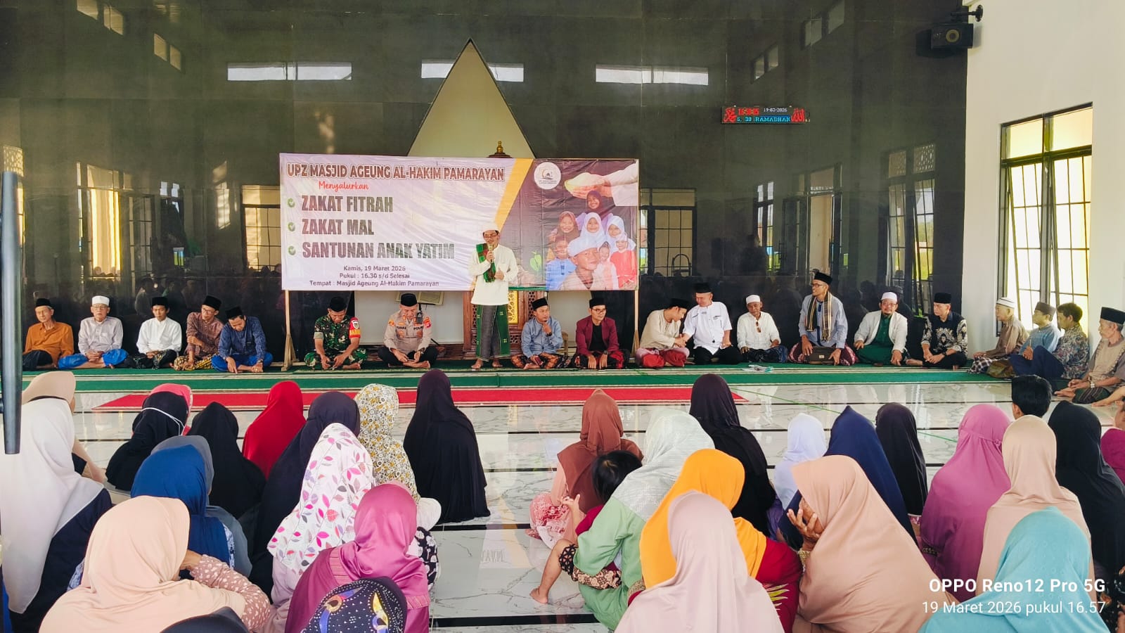 Menjelang akhir bulan Ramadhan tim UPZ Masjid Agung Pamarayan, menyalurkan Zakat Mall dan zakat fitrah kepada 250 Mustahik dan 20 anak yatim-piatu. Kegiatan itu bertempat di Mesjid Agung Pamarayan, Desa Pamarayan, Kecamatan Pamarayan, Kabupaten Serang, Banten, pada Kamis (19/03/2026).