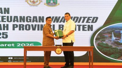 Gubernur Banten, Andra Soni melantik 132 pejabat Administrator dan Pengawas pada perangkat daerah di lingkungan Pemerintah Provinsi (Pemprov) Banten. Pelantikan tersebut berdasarkan Keputusan Gubernur Banten Nomor 161 Tahun 2026 dan berpedoman pada Undang-Undang Nomor 20 Tahun 2023 tentang Aparatur Sipil Negara (ASN).