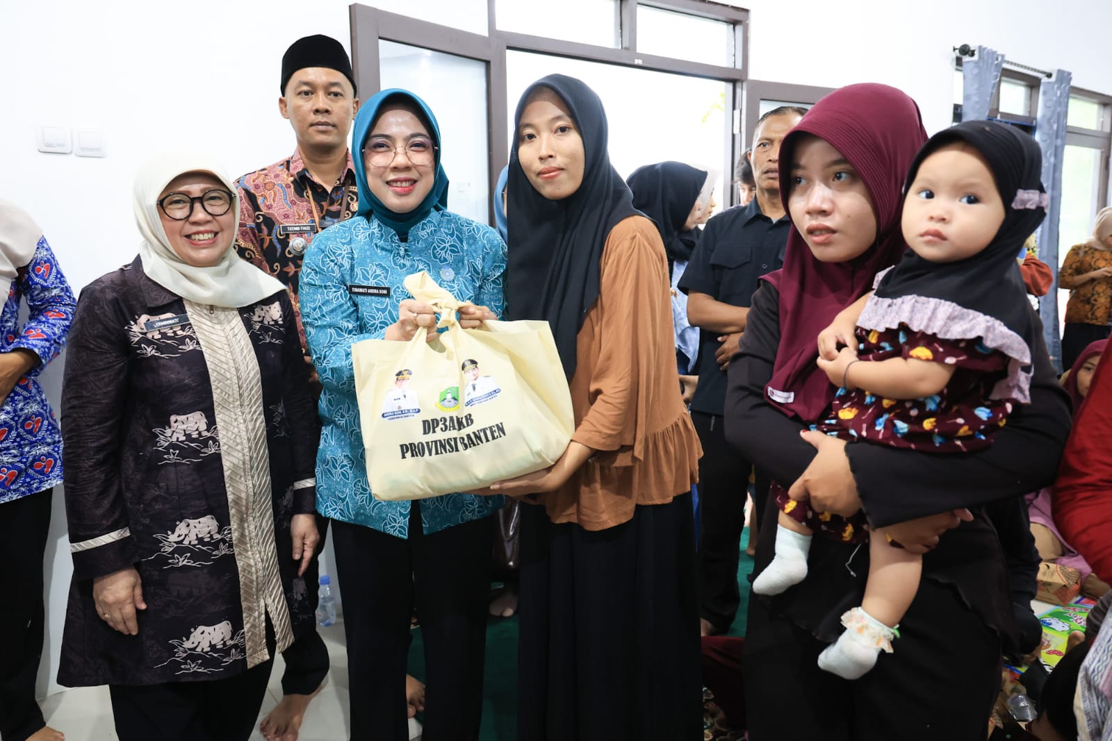 Ketua Tim Penggerak Pemberdayaan Kesejahteraan Keluarga (TP PKK) sekaligus Pembina Posyandu Provinsi Banten Tinawati Andra Soni menyerahkan program Pemberian Makanan Tambahan (PMT) untuk ibu hamil, menyusui, dan balita. Program untuk mencegah stunting ini juga dibarengi pelatihan bergizi berbahan pangan lokal.