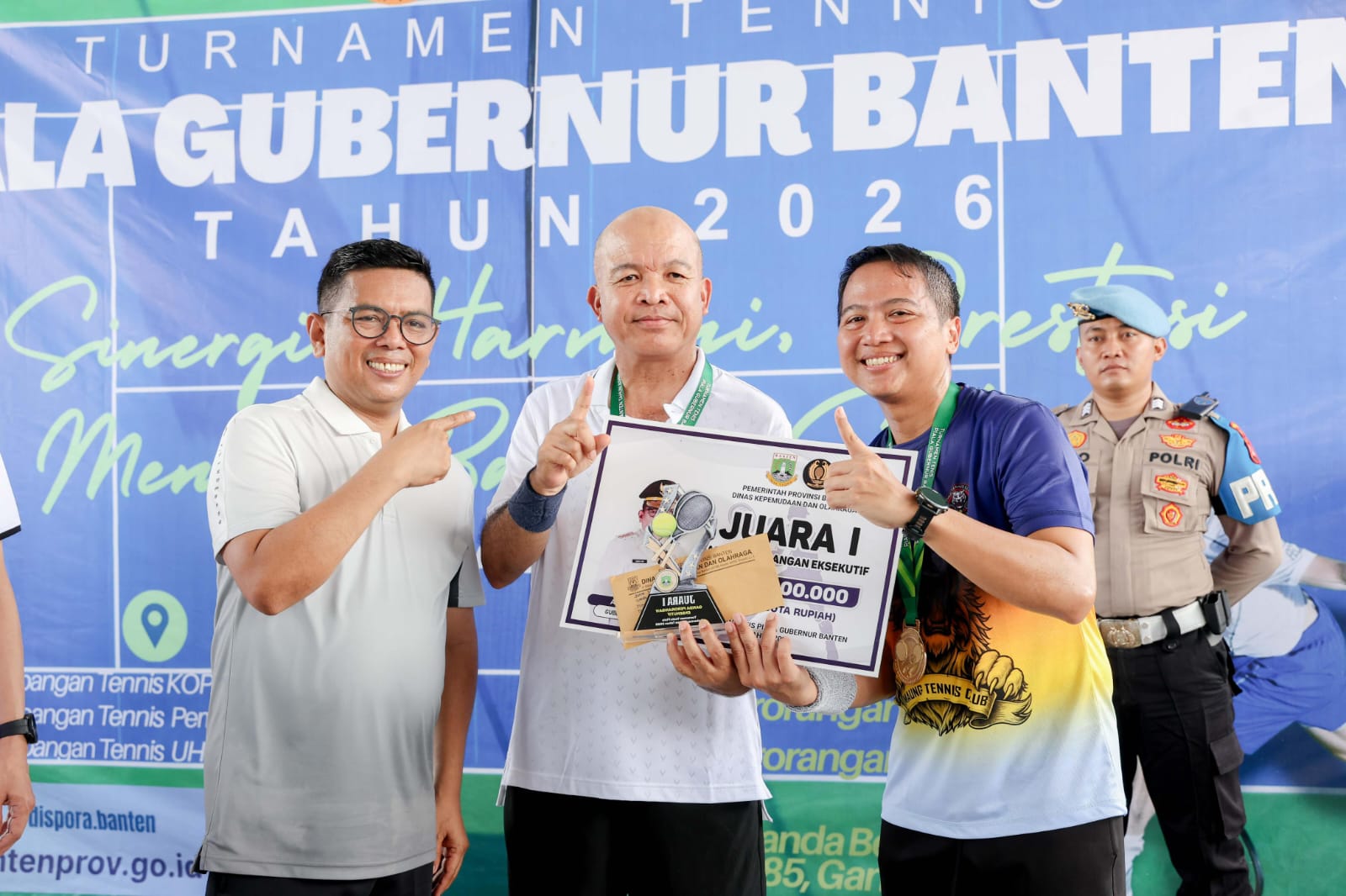 “Lebih penting lagi, bukan sekadar unsur kesehatan, tetapi ada juga unsur olahraga masyarakat antara pegiat tenis dan olahraga prestasi. Juga sinergi antar Forkopimda untuk menyelaraskan pembangunan Provinsi Banten sesuai dengan visi misi Gubernur Banten,” pungkas Oni.
