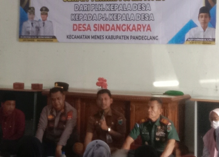 Serah terima jabatan (Sertijab) PLH Kepala Desa ke PJS Kepala Desa Sindang Karya, Kecamatan Menes, Kabupaten Pandeglang, Banten, pada Senin, (13/4/2026) beejalan lancat.