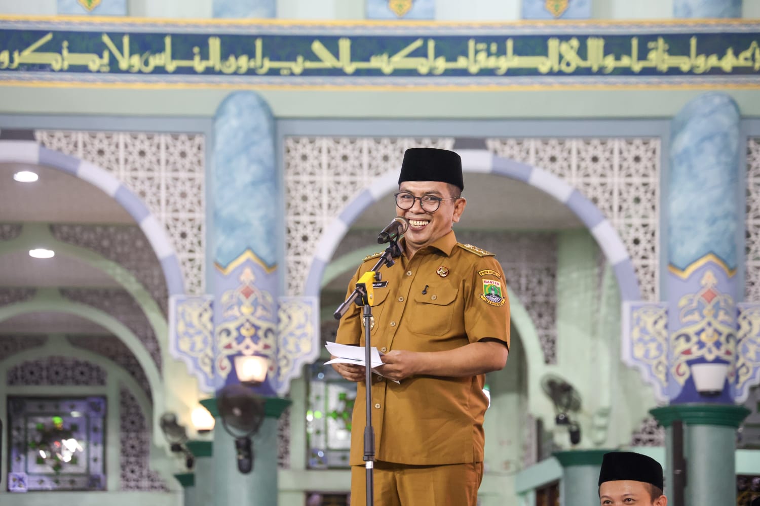 Gubernur Banten Andra Soni melepas 393 jemaah haji kloter 01-JKB Kota Tangerang di Masjid Raya Al-A’zhom, Jalan Satria – Sudirman, Kelurahan Sukaasih, Kecamatan Tangerang, Kota Tangerang, Selasa (21/4/2026) malam. Untuk pertama kalinya, para jemaah diberangkatkan melalui Asrama Haji Cipondoh.